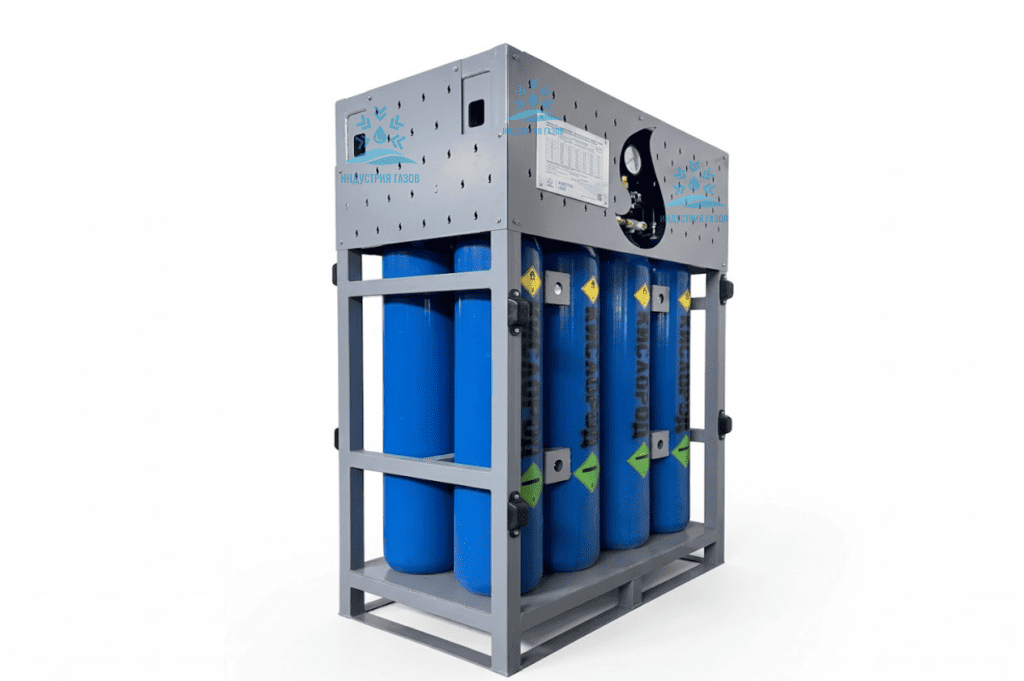 Моноблок позволяет существенно сэкономить время на погрузку и разгрузку, поскольку все баллоны объединены в одну систему. Вместо того чтобы работать с каждым баллоном отдельно, вы получаете компактное решение, которое упрощает транспортировку и установку оборудования, повышая общую эффективность работы.